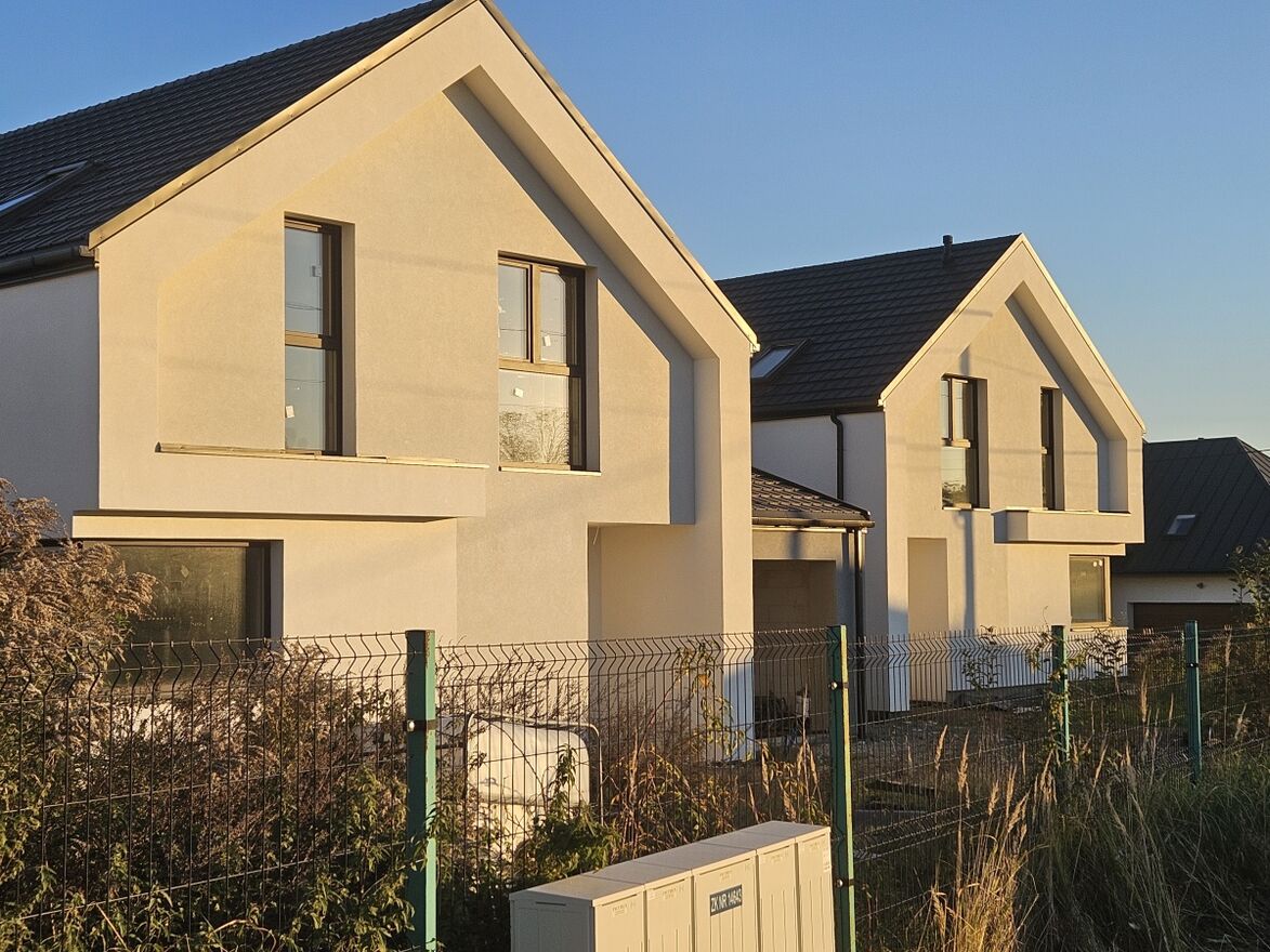 Domy połączone są jedynie poprzez garaże. Całkowita powierzchnia podłóg pojedynczego domu wynosi 174m2, natomiast powierzchnia użytkowa to 131m2. Usytuowane są na działkach o powierzchni od 440 do 650m2. Każda nieruchomość posiada niezależny wjazd na posesję, przyłącze wodociągowe, przyłącze energii oraz przyłącze kanalizacyjne. Przy drodze gminnej jest sieć światłowodowa oraz oświetlenie uliczne.